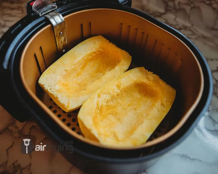 - Place both halves, with the cut side up, in your air fryer basket and cook at 360 ° F | 183 ° C for 25-30 minutes.