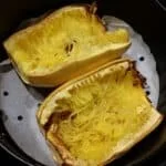 Second, the air fryer cooked texture will be better. What I have found in numerous cooking methods–microwave, slow cooker, pressure cooker, or conventional oven–is that it’s difficult to achieve the perfect texture. It’s either too raw or too mushy. In fact, when cooking in the slow cooker, spaghetti squash can become too mushy, congealed, or nearly liquid. However, air frying produces the perfect al dente texture.